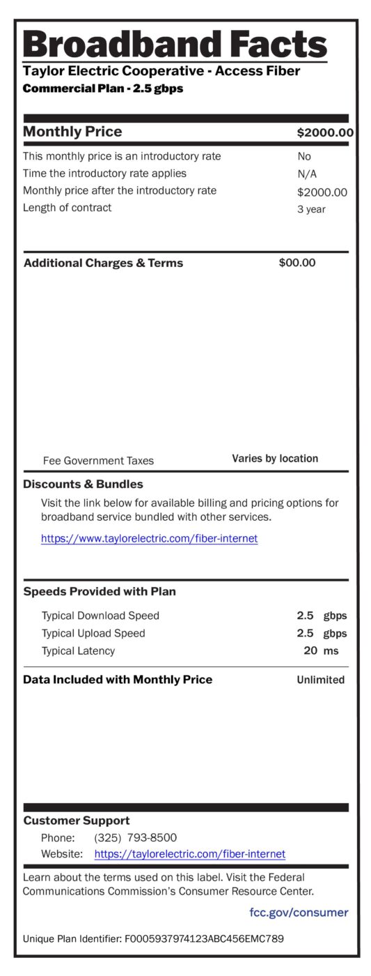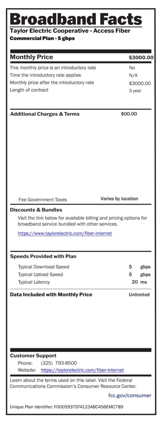 ACCESS Fiber offers commercial members up to 1 Gig of service for one flat fee with no data cap.