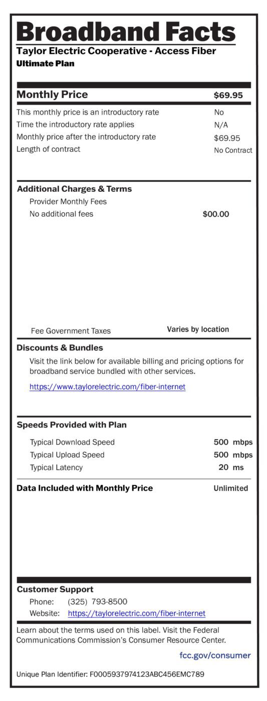 ACCESS Fiber offers members up to 1 Gig of service for one flat fee with no data cap.